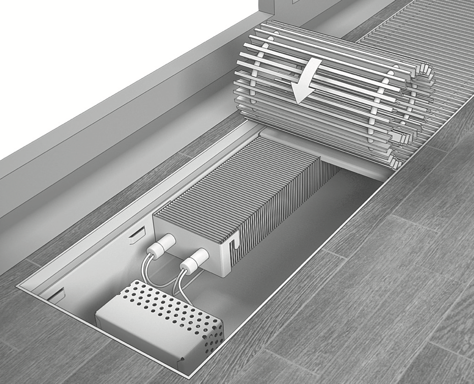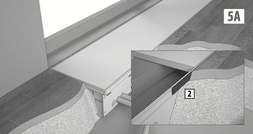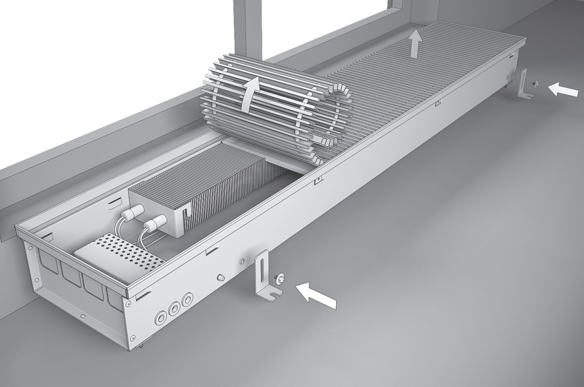 Не допускайте, чтобы корпус конвектора испытывал нагрузки со стороны пола. При использовании расширяющихся напольных покрытий, например паркета, а также системы “теплый пол”, необходимо устанавливать в месте стыка рамки конвектора с покрытием компенсационные швы 2, например пробковую, либо резиновую полосу. При влажной уборке не допускайте попадания воды на элементы, подключенные к электрической сети. При очистке решетки и корпуса конвектора не используйте абразивных материалов, растворителей, кислотных и щелоче-содержащих моющих средств. |