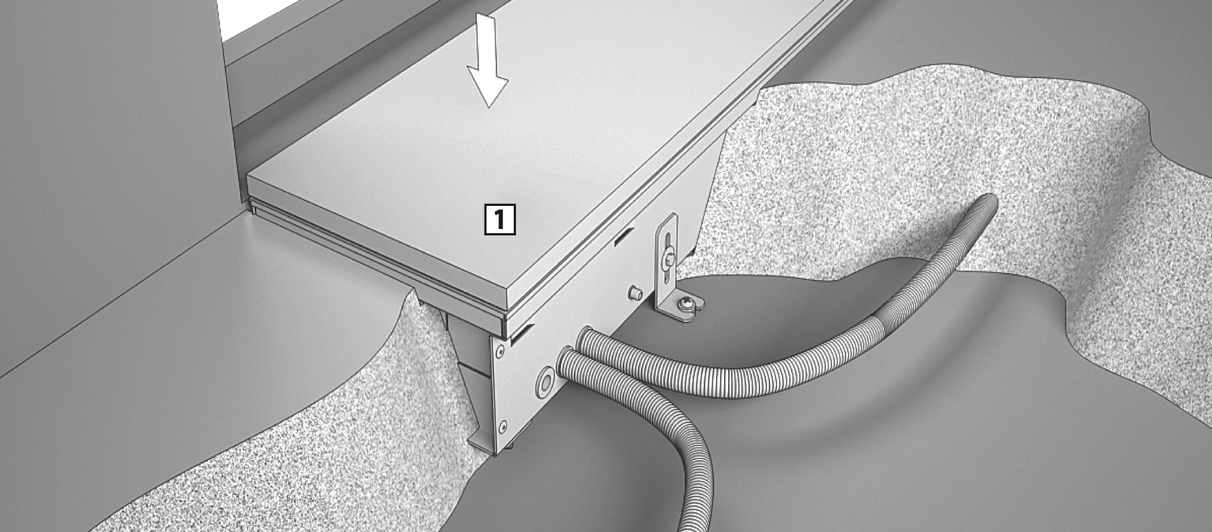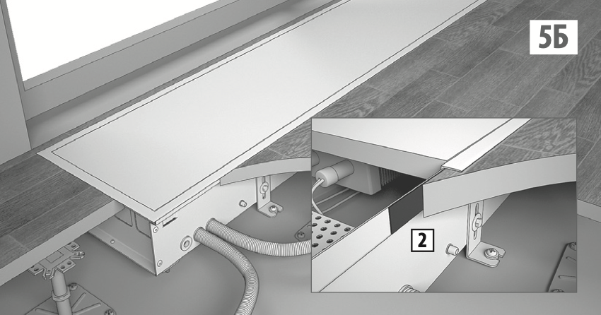Накройте корпус конвектора защитной крышкой 1 (в комплект поставки не входит).