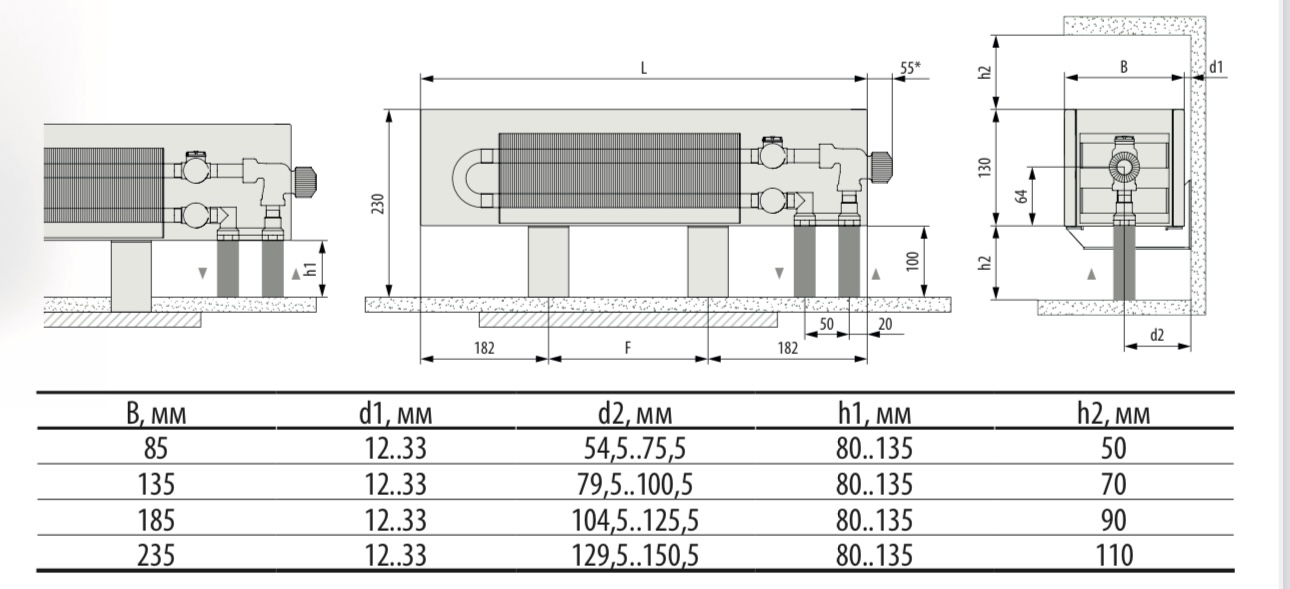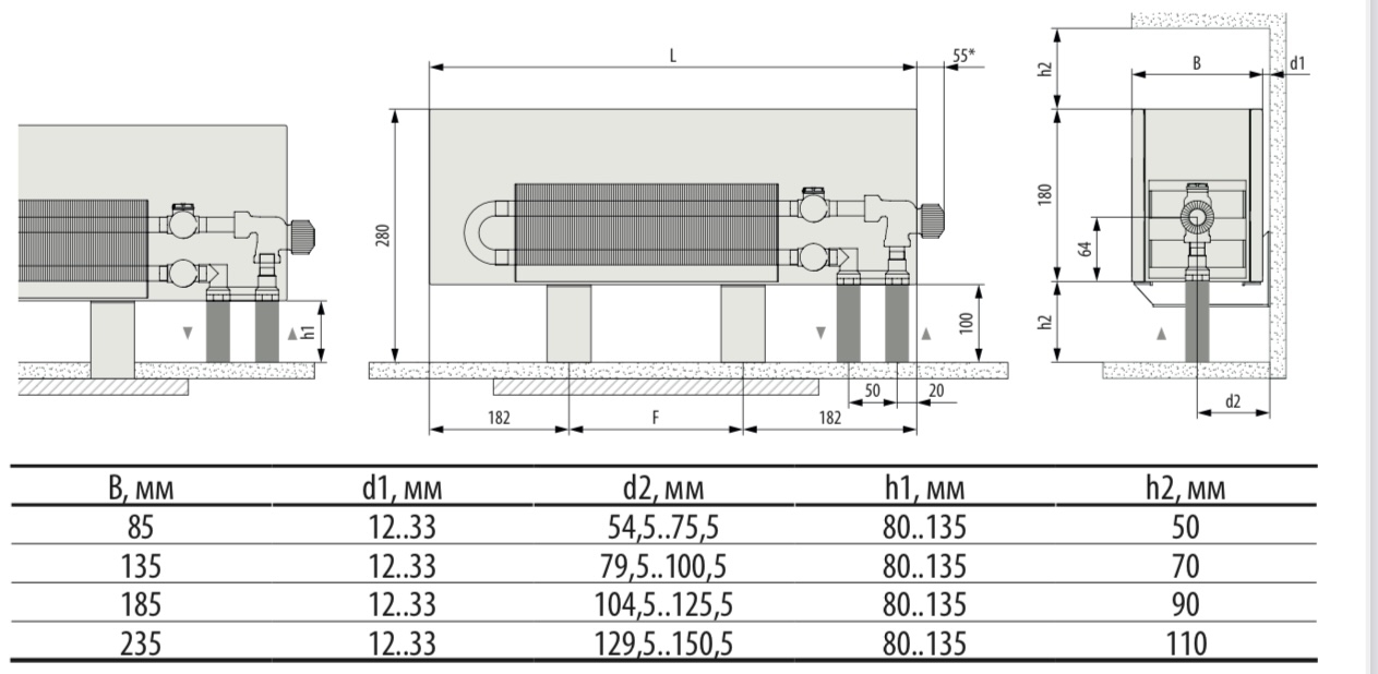 Руководство по монтажу конвекторов MiniKon с консолями напольного монтажа