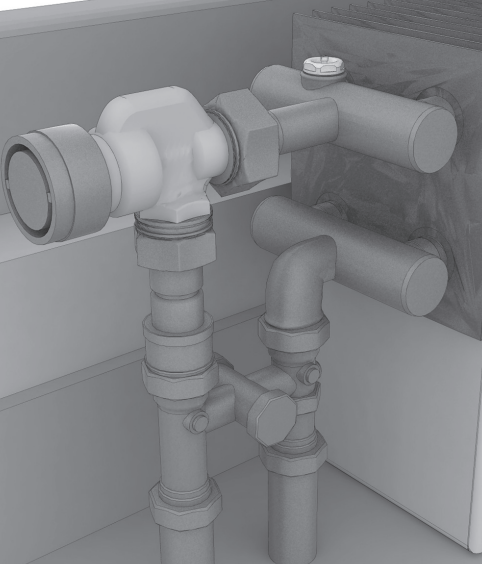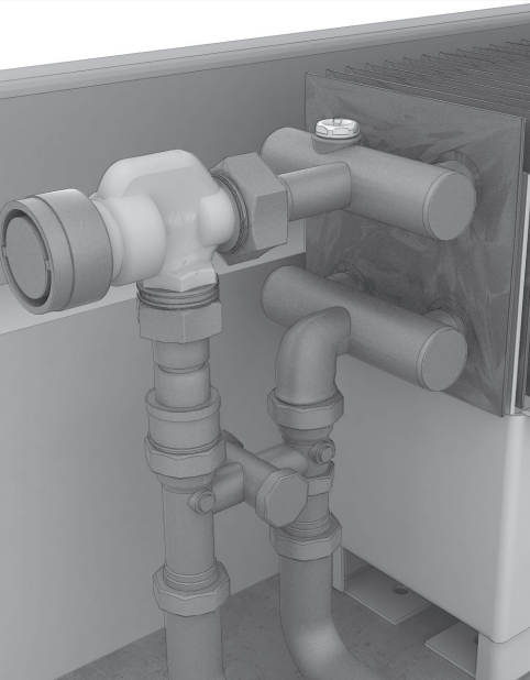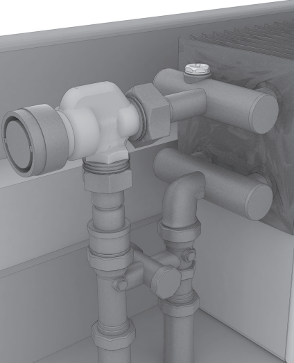 Установите термостатический вентиль на подающую линию и запорный вентиль на обратную линию при боковом подключении конвектора, либо H-образную гарнитуру прямого/углового исполнения при нижнем подключении конвектора в соответствии с трассировкой труб системы отопления. Присоедините подающий и обратный трубопроводы системы отопления. Проведите гидравлические испытания системы отопления.