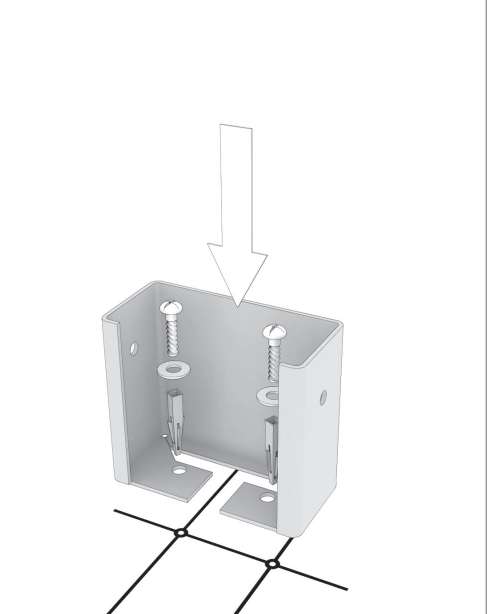 Разместите конвектор, учитывая монтажные отверстия под напольные консоли. Просверлите в полу отверстия Ø8 мм под дюбели.