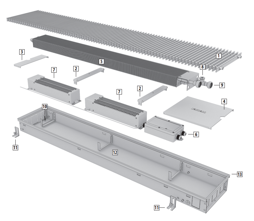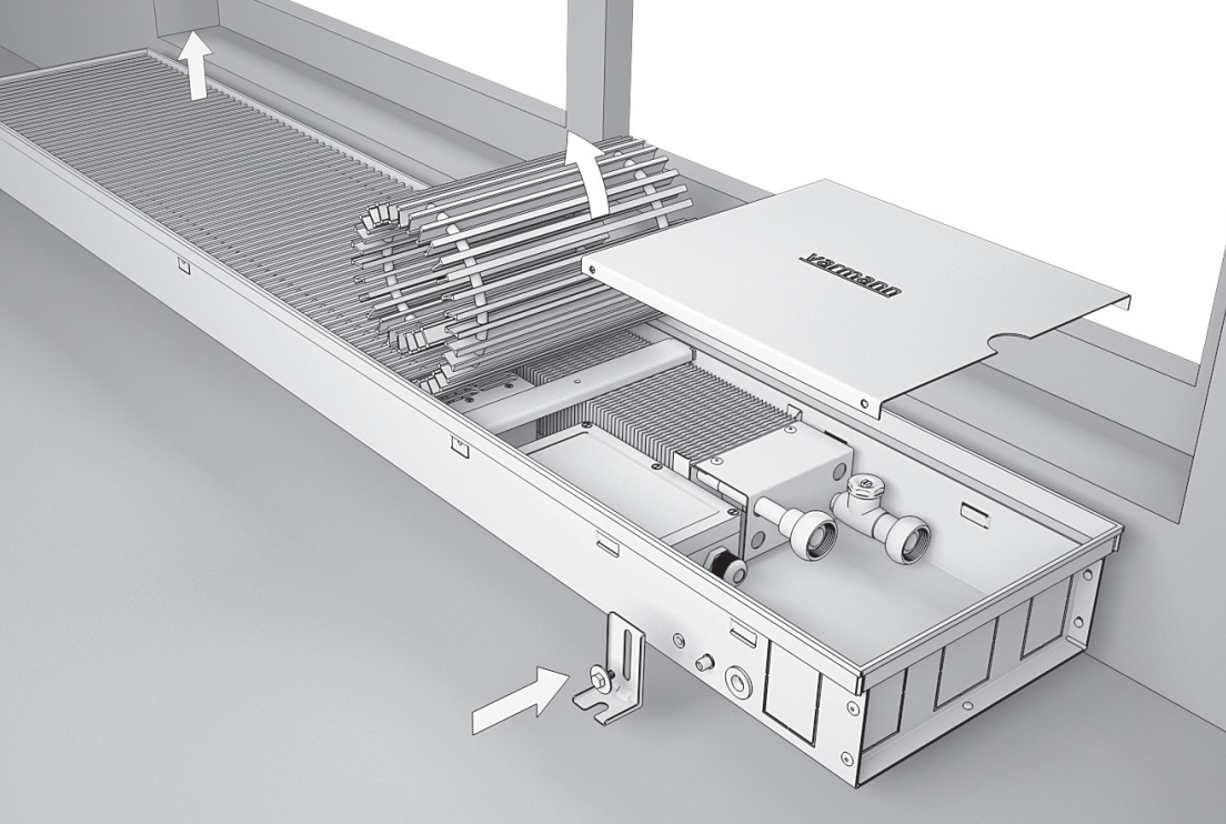 Если конвекторы имеют соединения друг с другом в заказном исполнении, воспользуйтесь дополнительной инструкцией по монтажу конвекторов в заказном исполнении. Всю недостающую информацию можно получить в технических каталогах компании Varmann