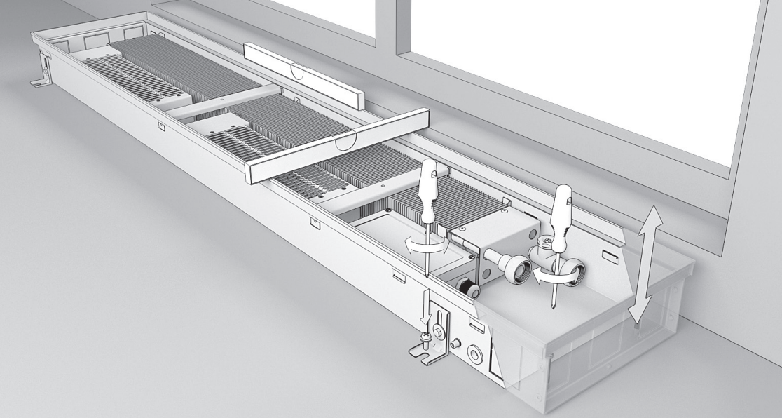 – правильность установки конвектора в уровень пола;