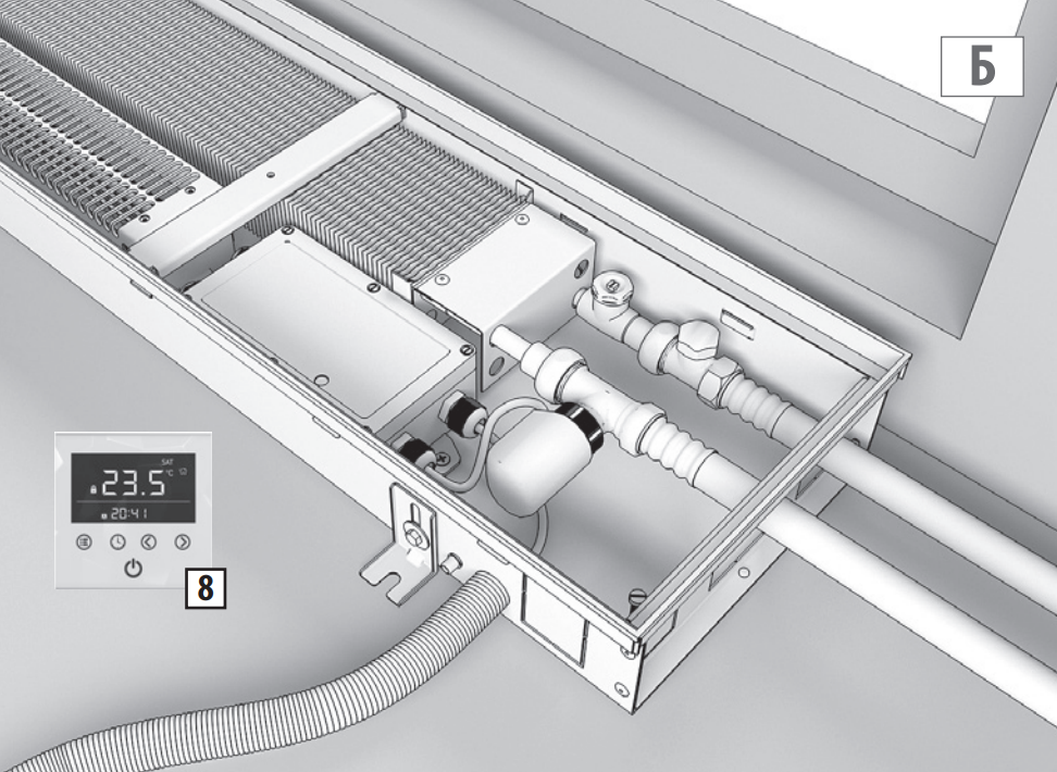 Запрещается эксплуатация конвектора без подключенного контура заземления к корпусу. Для правильного размещения и подключения настенного регулятора используйте инструкцию. Не устанавливайте настенный регулятор в зоны попадания прямых солнечных лучей, над отопительными приборами, над окнами и дверьми.