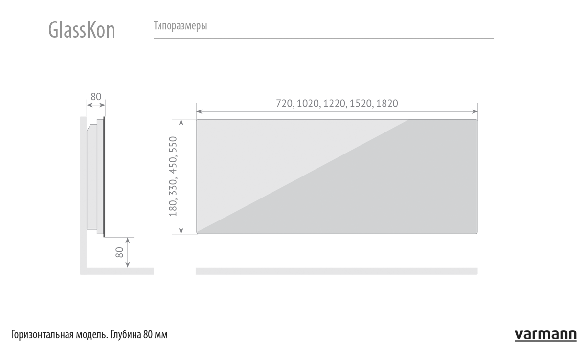 Дизайн-конвектор Varmann GlassKon GLKHWO 80.180.720, подключение боковое