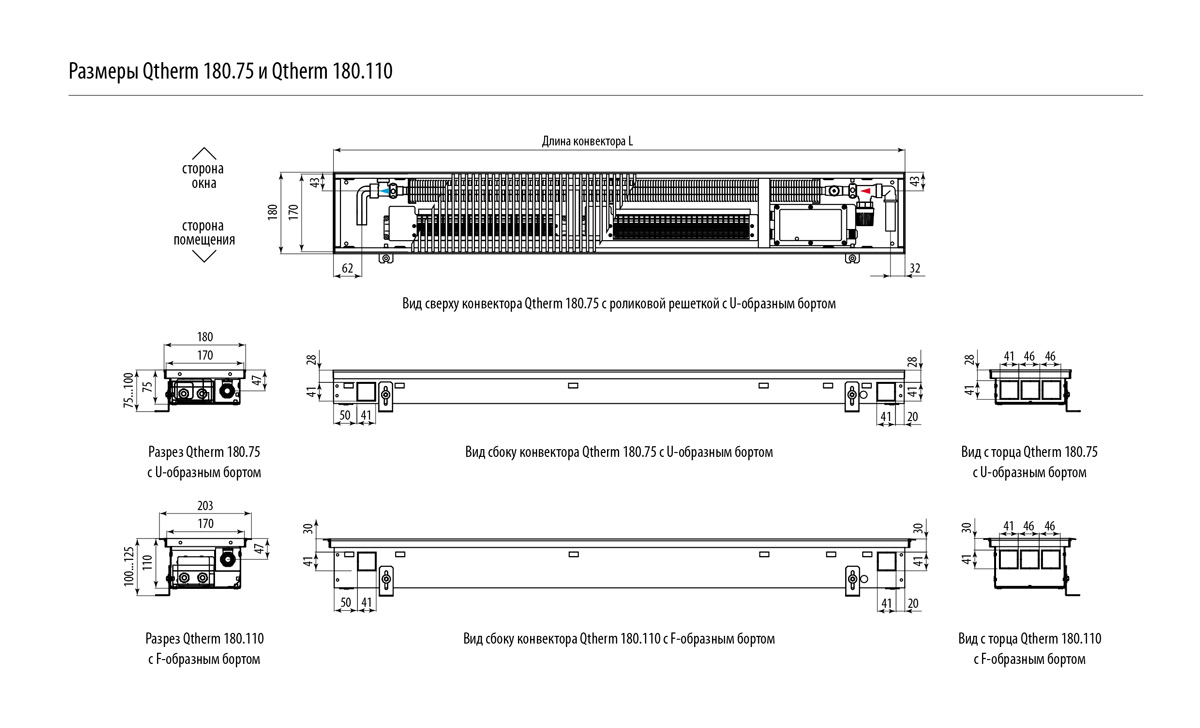 Встраиваемый в пол конвектор Varmann Qtherm Q 180.75.1750 RR U EV1