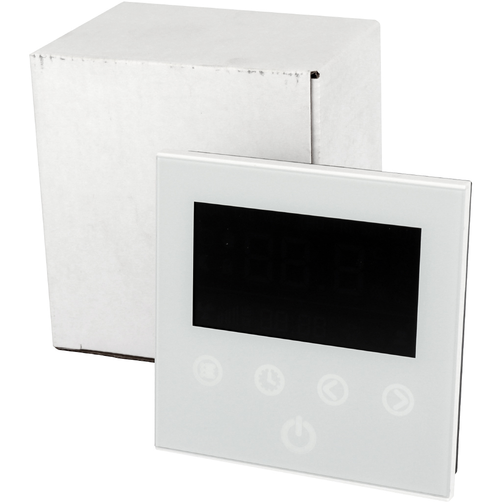 Настенный регулятор имеет великолепный дизайн с единой лицевой стороной полностью выполненной из закаленного стекла.