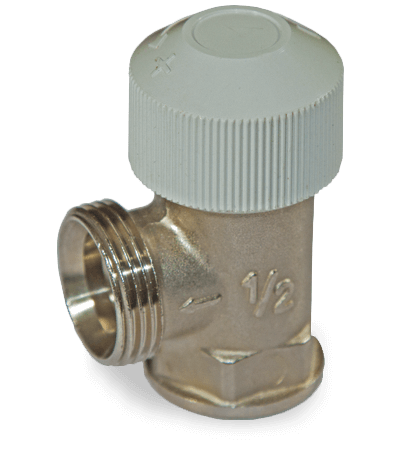Вентиль на подающую линию DN15, G 3/4”, с предварительной настройкой расхода теплоносителя через конвектор, с защитным колпачком, в латунном корпусе, с нержавеющим стальным шпинделем и двойным концевым уплотнением.