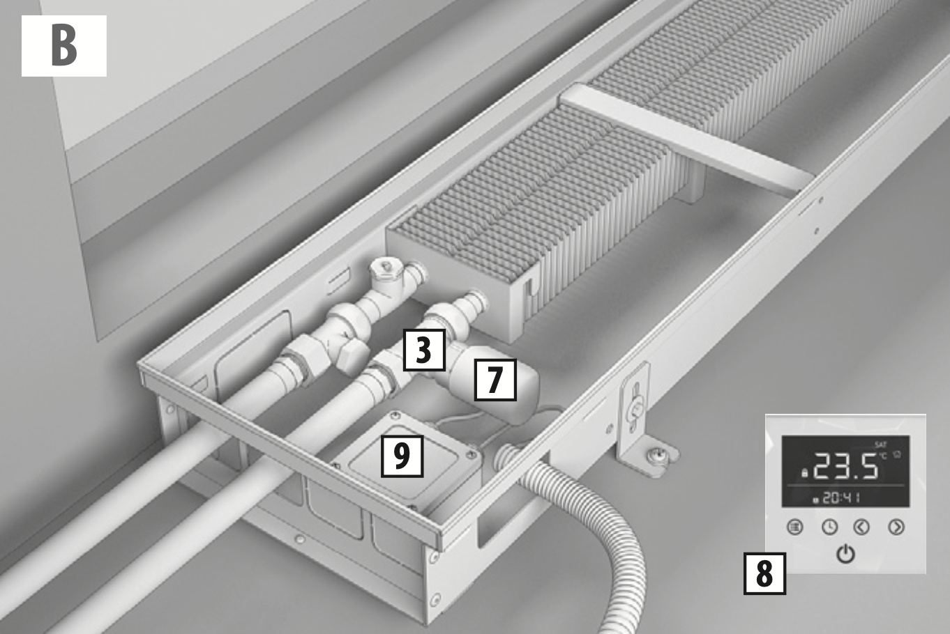 Для электрических подключений используйте монтажно-распределительную коробку 9 (в комплект поставки не входит).