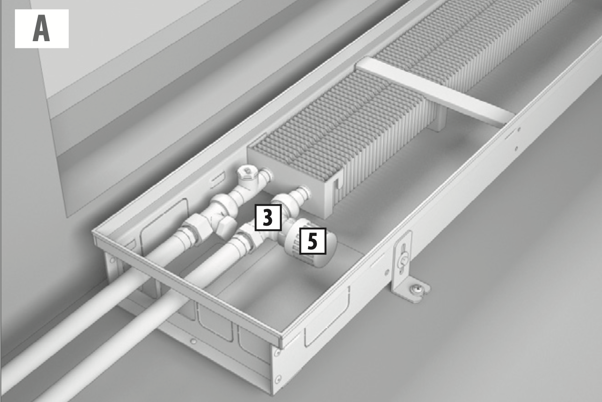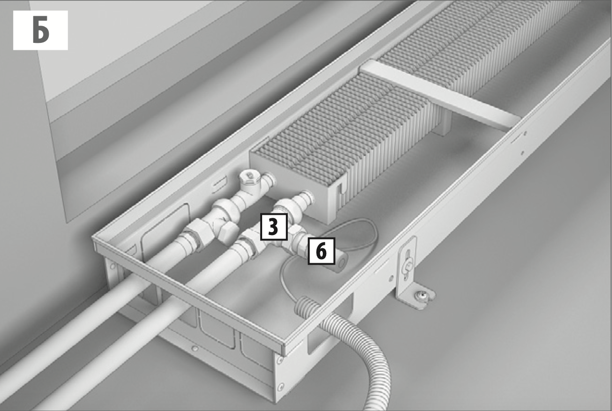 в нем теплоносителя. Монтаж конвектора должен быть произведен с обязательной возможностью перекрытия входа и выхода теплоносителя посредством установки запорно-регулирующей арматуры.