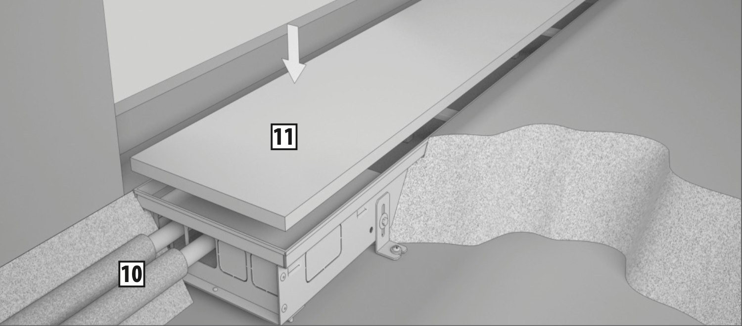 Рекомендуется производить очистку конвектора в начале отопительного сезона. Очистка осуществляется пылесосом или влажной уборкой. При установке конвектора с регулируемым полом в месте стыка используйте компенсационные швы 11.