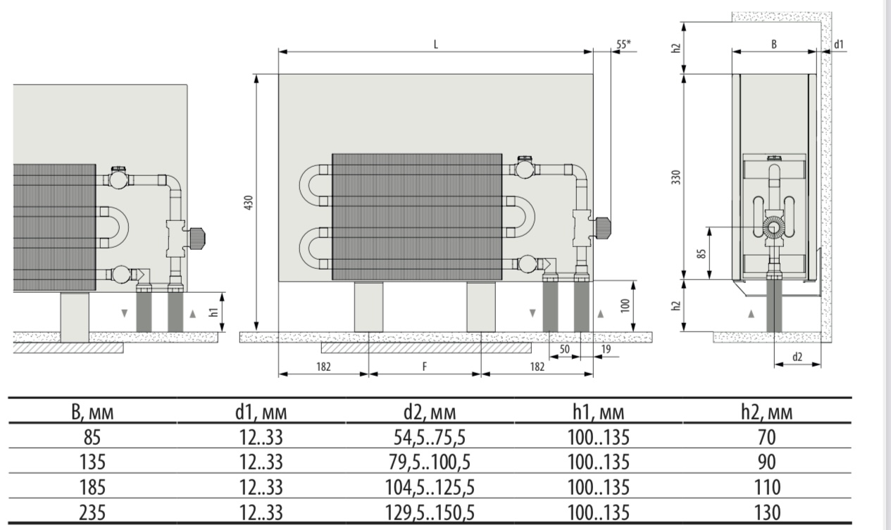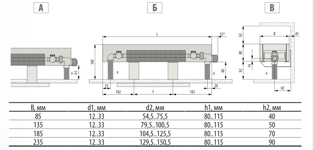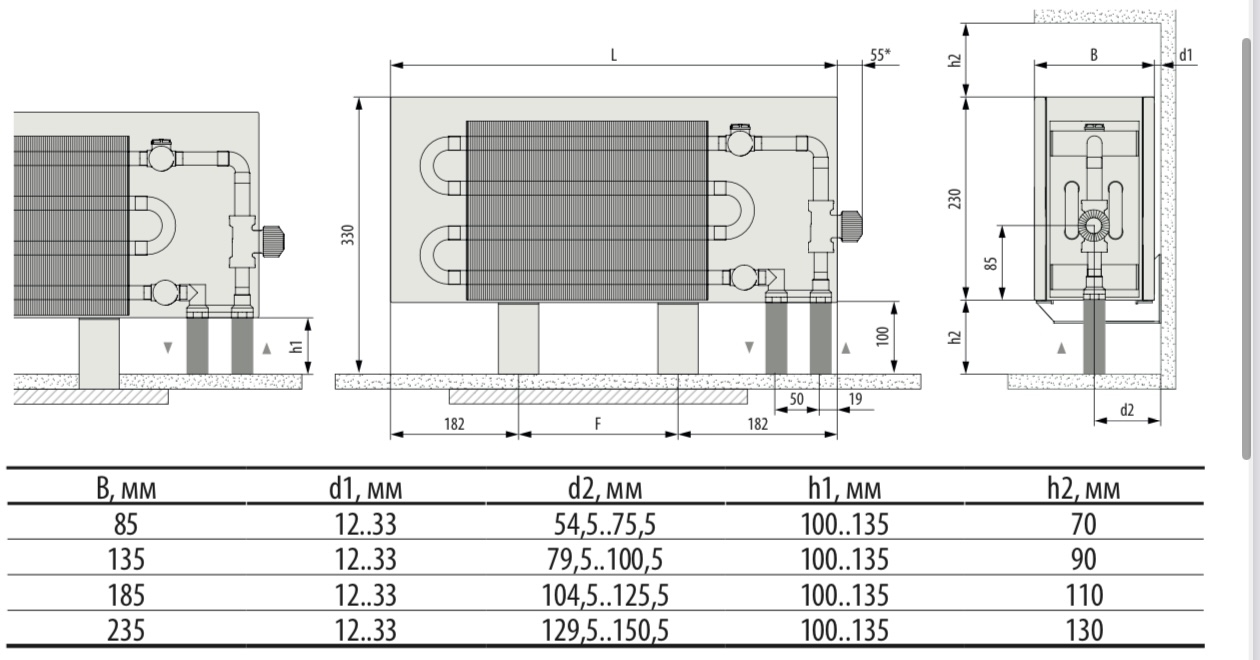 Руководство по монтажу конвекторов MiniKon с консолями напольного монтажа