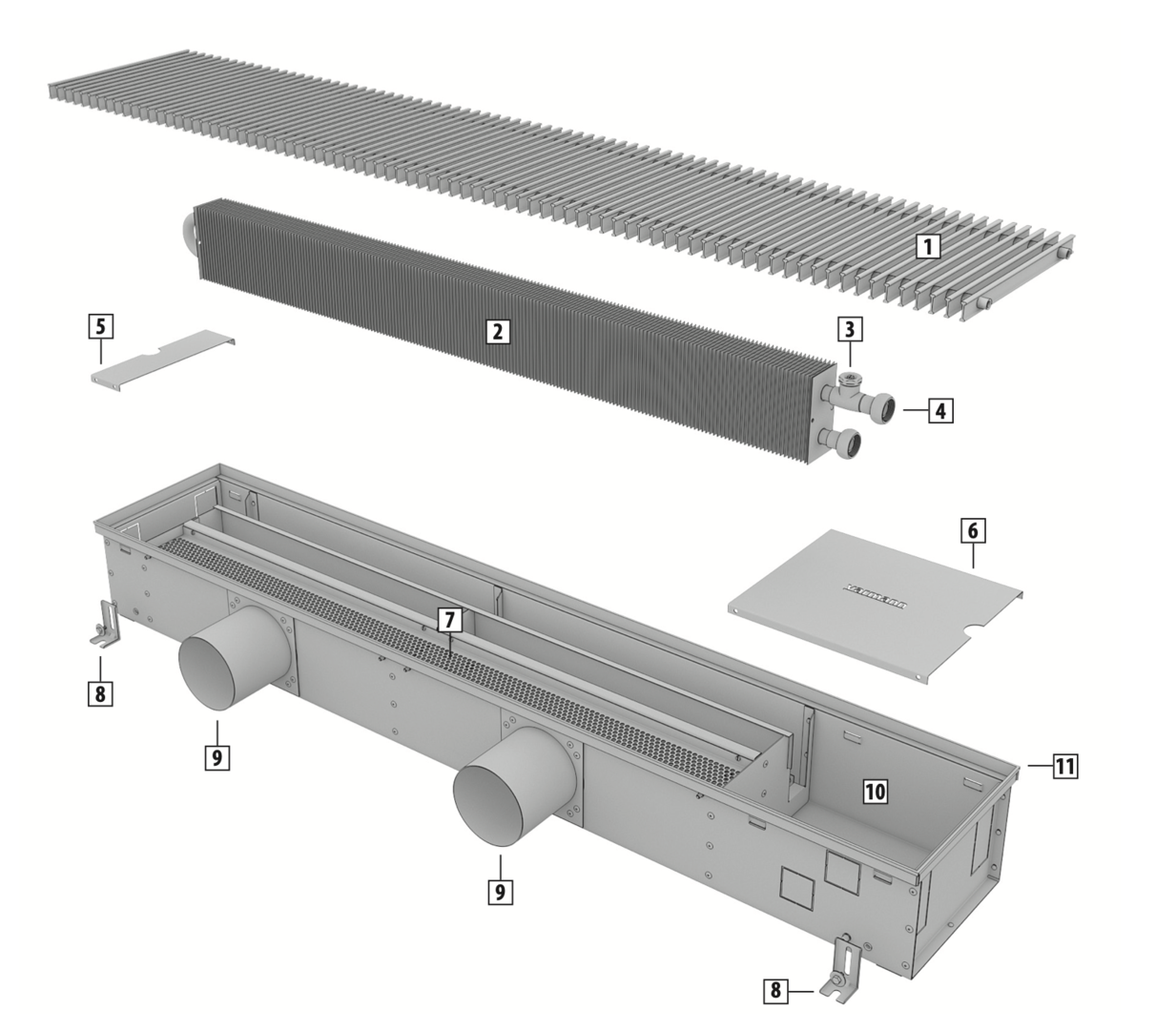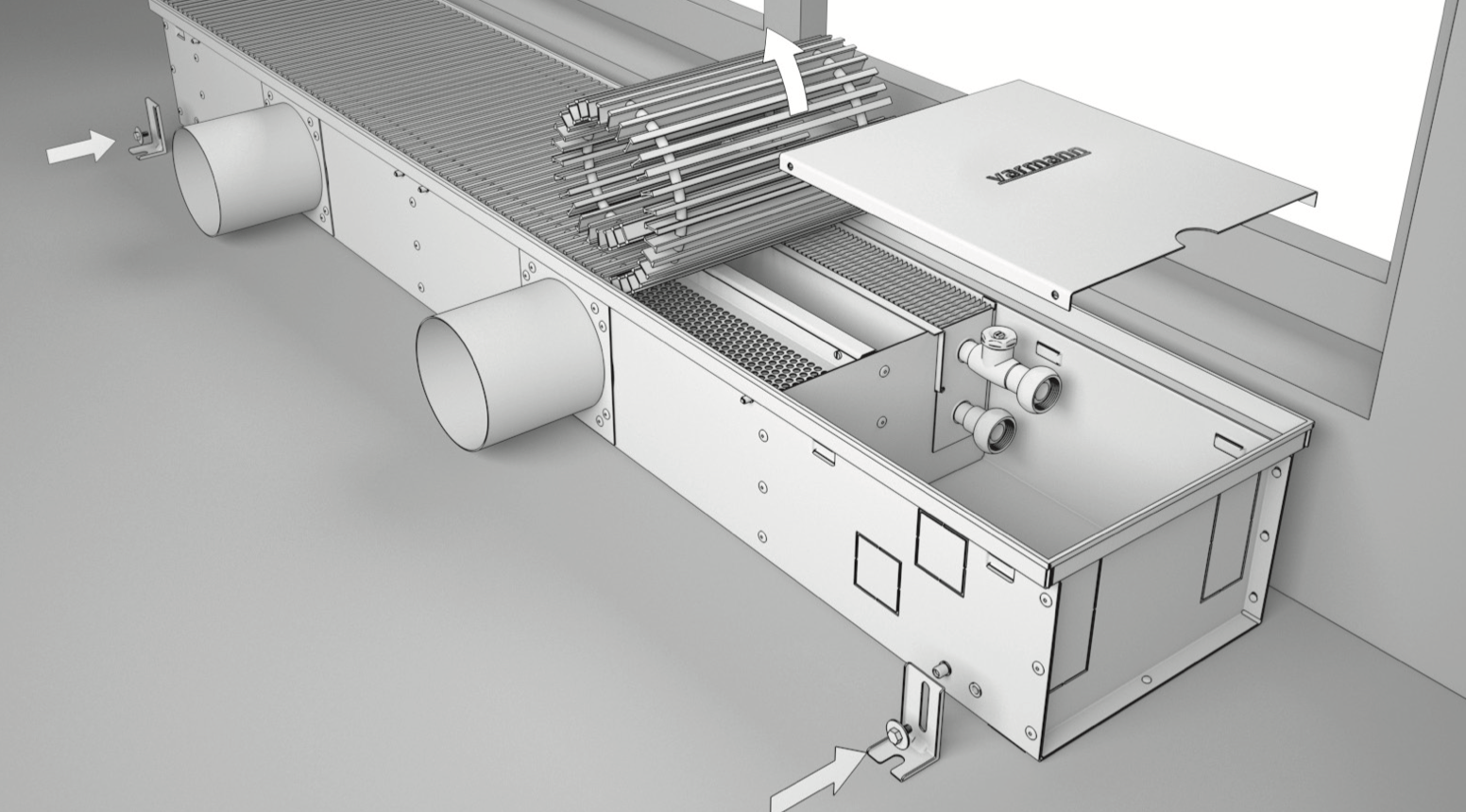 Если конвекторы имеют соединения друг с другом в заказном исполнении, воспользуйтесь дополнительной инструкцией по монтажу конвекторов в заказном исполнении.