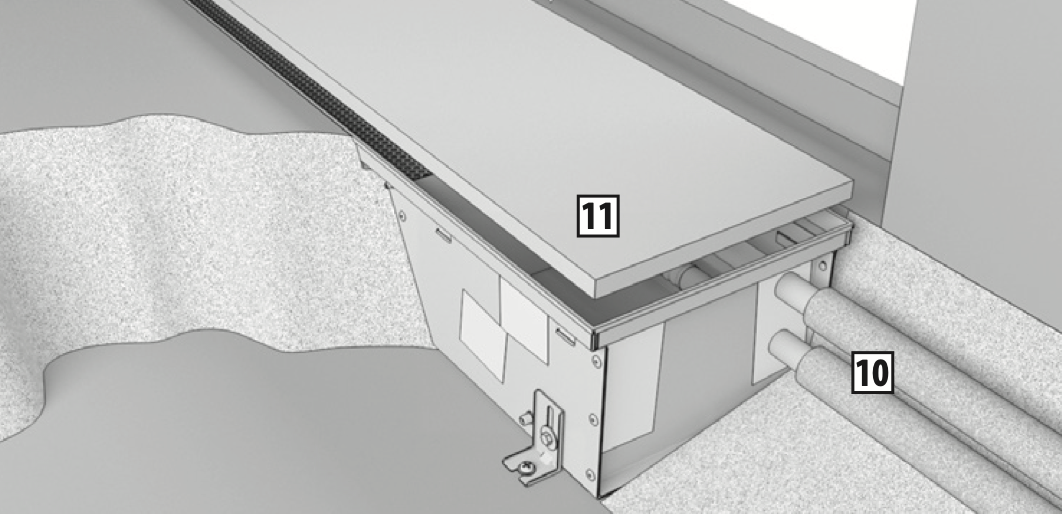 При установке конвектора с регулируемым полом в месте стыка используйте компенсационные швы 12.