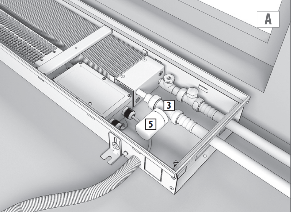Корпус конвектор для эксплуатации во влажных помещениях оснащается дренажными отводами и по умолчанию изготавливается для подключения к электрической сети с напряжением питания -24 В от внешнего блока питания (приобретается отдельно). Следует избегать эксплуатации конвектора в системах отопления с излишним
