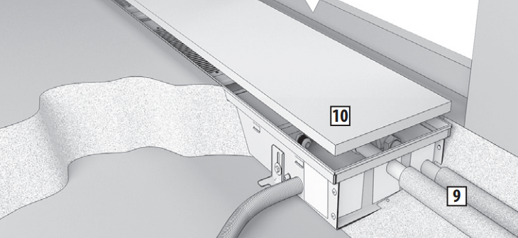 При установке конвектора с регулируемым полом в месте стыка используйте компенсационные швы 11