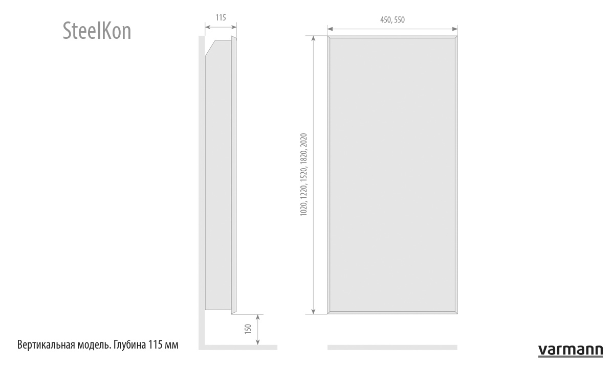 Вертикальный дизайн-конвектор Varmann SteelKon STKVWO 115.2020.550, подключение боковое - рассчитан на длительный срок службы, гарантия на медно-алюминиевый теплообменник и корпус конвектора действует в течение 10 лет.