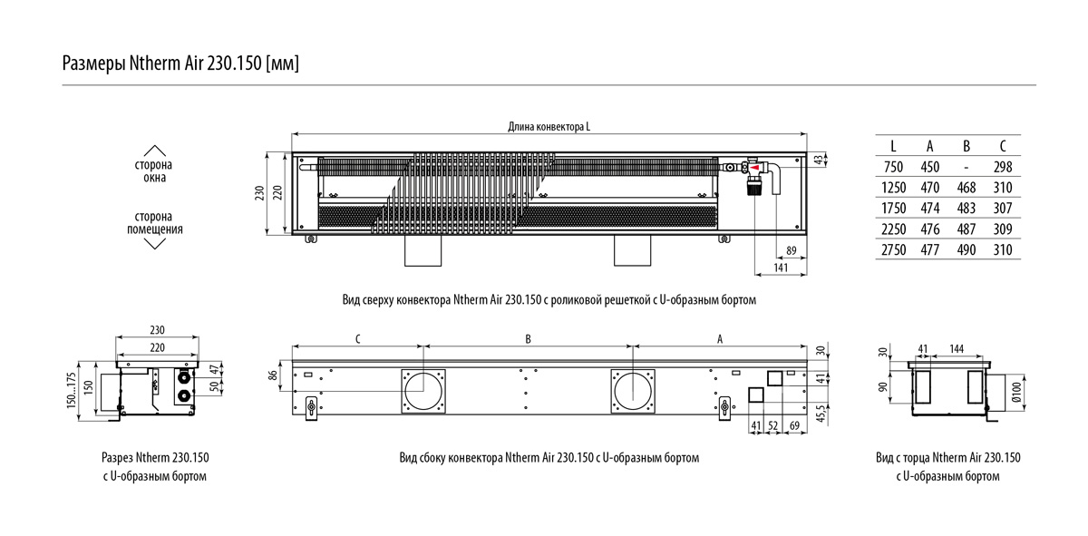 Встраиваемый в пол конвектор Varmann Ntherm Air NA 230.150.2750 RR U EV1