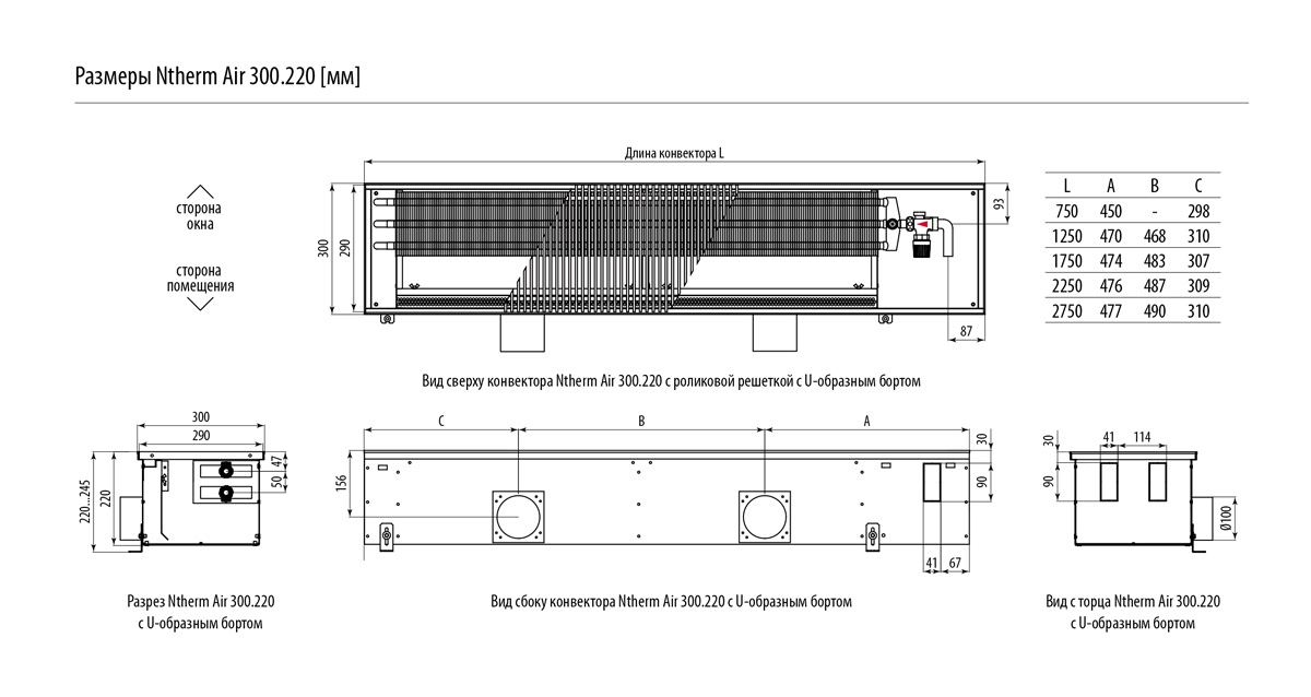Встраиваемый в пол конвектор Varmann Ntherm Air NA 300.220.2250 RR U EV1