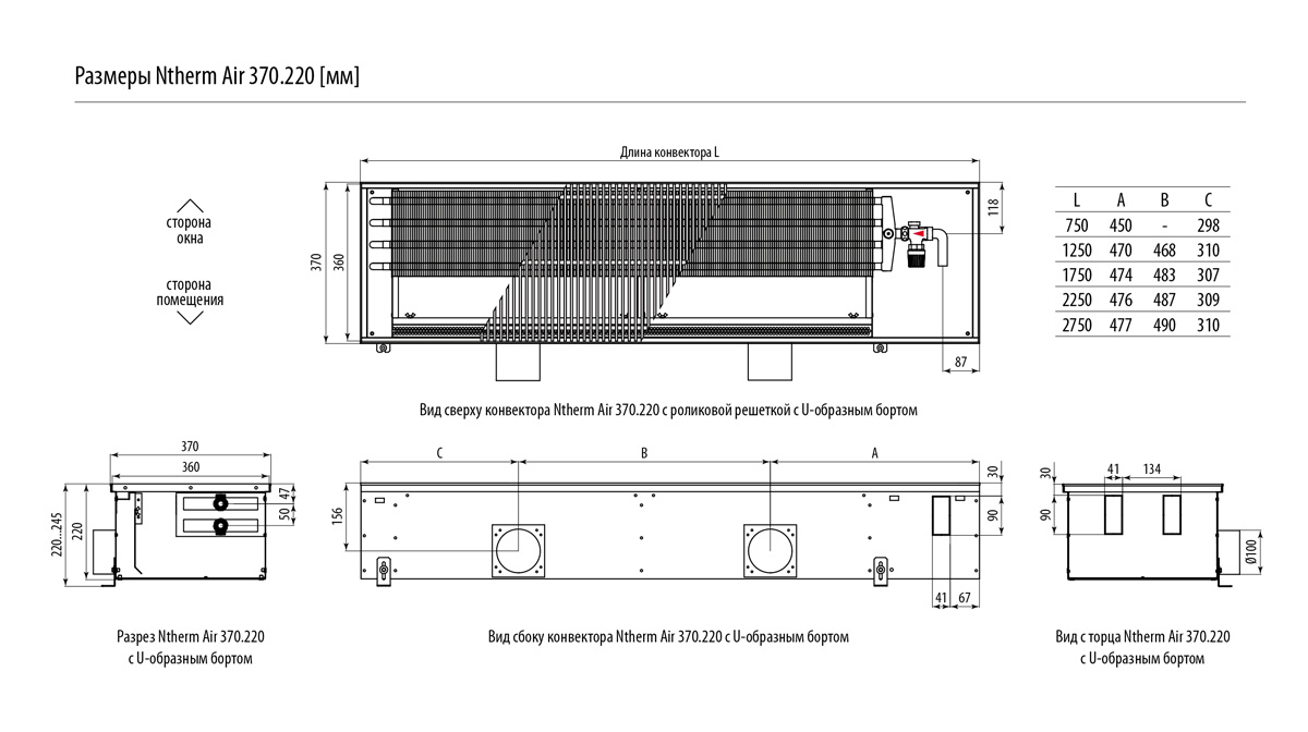 Встраиваемый в пол конвектор Varmann Ntherm Air NA 370.220.2250 RR U EV1