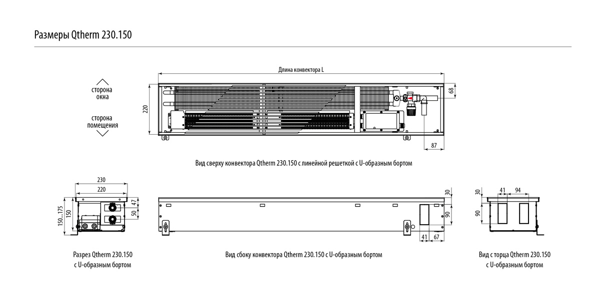 Встраиваемый в пол конвектор Varmann Qtherm Q 230.150.2000 RR U EV1