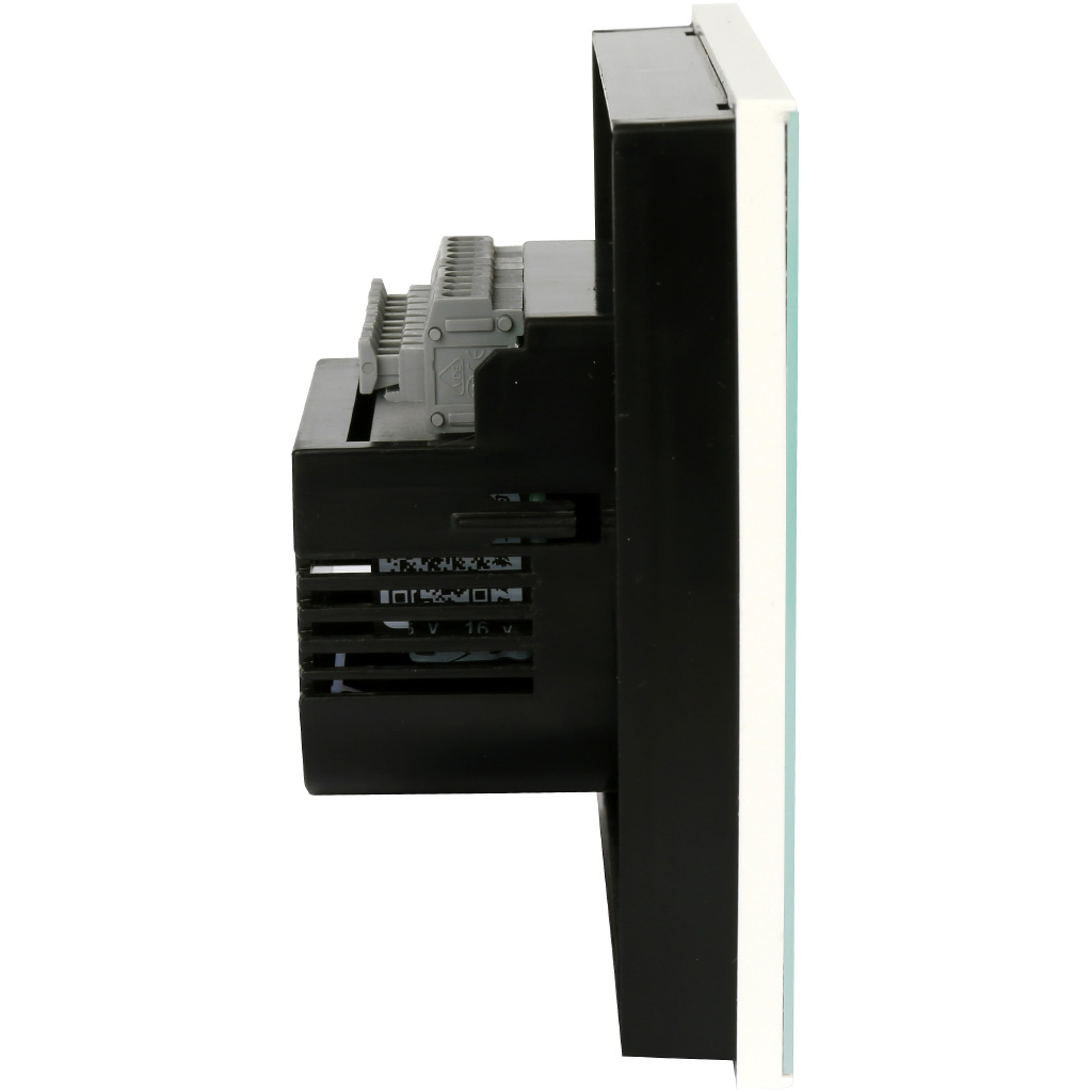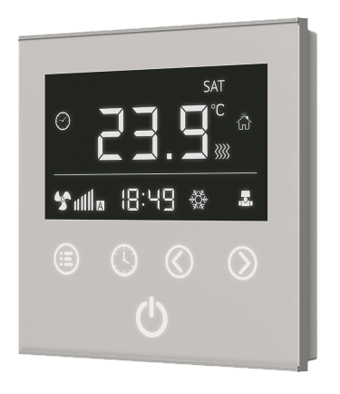 Настенный регулятор имеет великолепный дизайн с единой лицевой стороной полностью выполненной из закаленного стекла.