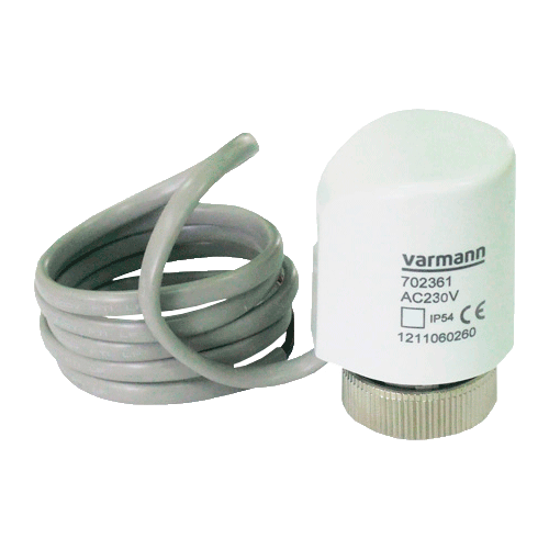 Термоэлектрический сервопривод для монтажа на термостатический вентиль конвектора, резьбовое соединение M 30 x 1.5. Подключается к настенному регулятору тип 703101, 703102.